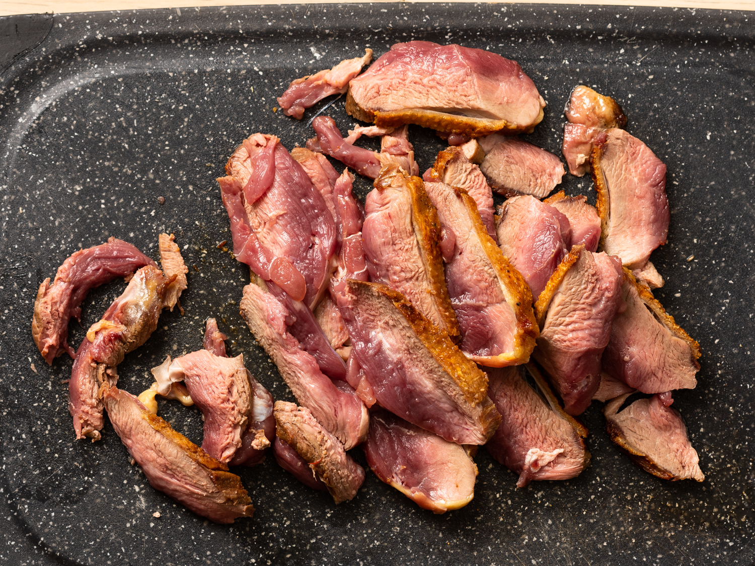 - Transfer the duck fillets from the wok to a plate with the skin facing up so they don’t get soggy.